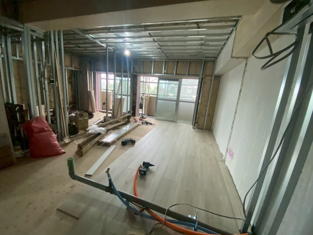 まだ下地の状態ではありますが、リビングや寝室など部屋の広さや形がわかるようになり、「ここに暮らす家族」を想像できるようになってきています。
