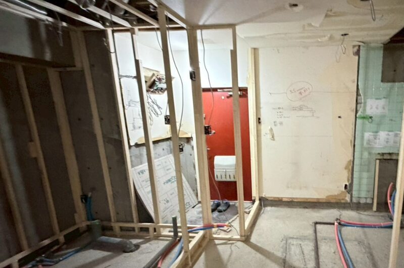 また、電気温水器をガス給湯器に変更したり、ユニットバス裏の空間を見直すことで、限られた面積をできるだけ有効に利用できるように工夫していきます。