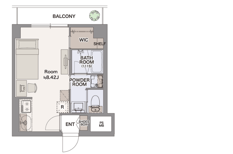 水回りを右側にまとめて生まれたスペースを活用し、ウォークインクローゼット(WIC)を設置します。