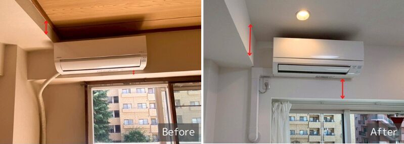 一方で配管のない居室部分は天井をギリギリまで上げ、できるだけ開放感を確保します。